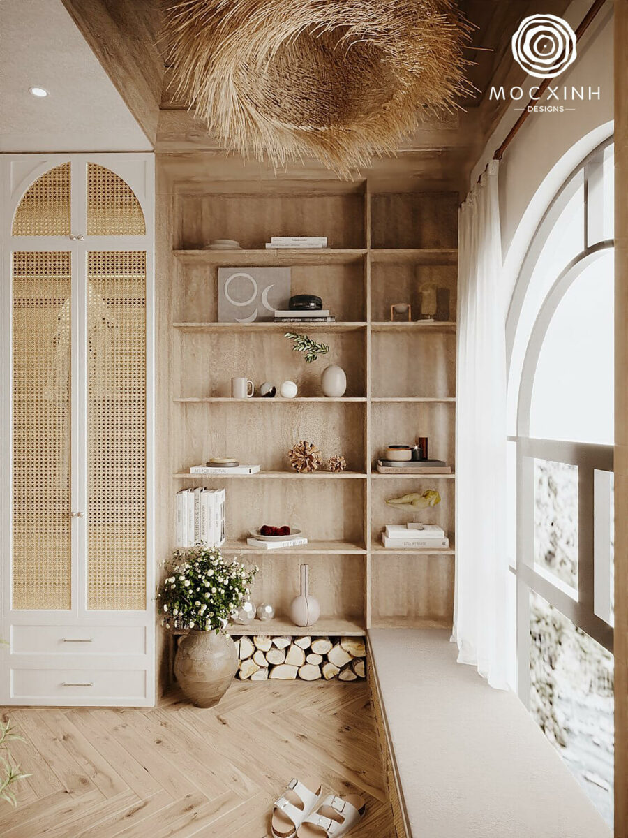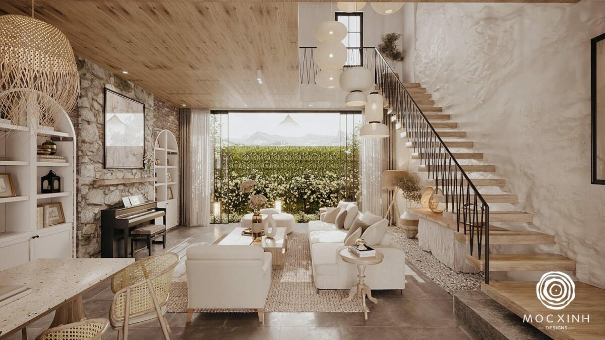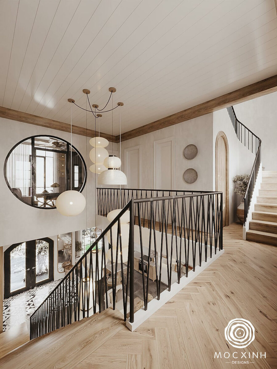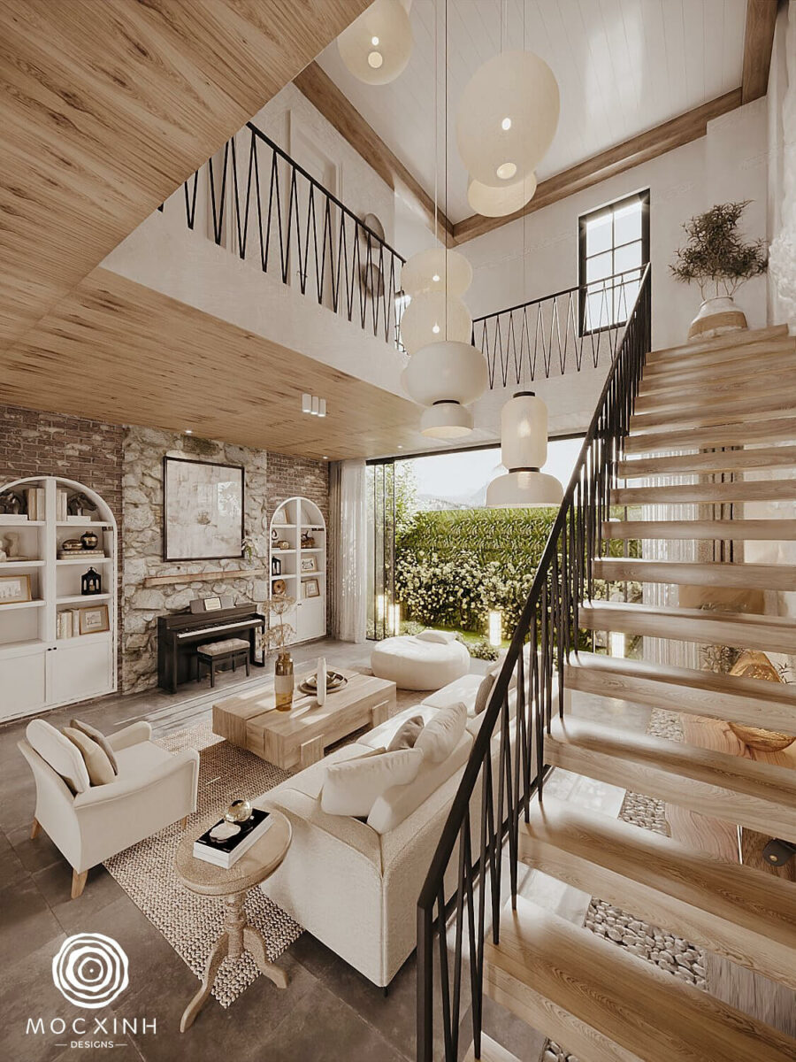 Với mong muốn sử dụng tối đa chất liệu gỗ, đội ngũ 𝐌𝐨̣̂𝐜 𝐗𝐢𝐧𝐡 𝐃𝐞𝐬𝐢𝐠𝐧𝐬 đã cùng lên ý tưởng với gia chủ để tạo nên không gian nhìn đâu thấy bình yên và nhẹ nhàng. Từ trần nhà, cầu thang đến tủ kệ bếp đều được Mộc khéo léo đưa vào những chất liệu và thiết kế hài hào, tạo ra dấu ấn riêng dành cho căn nhà.