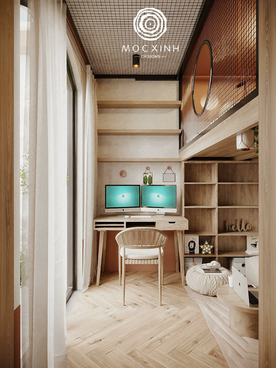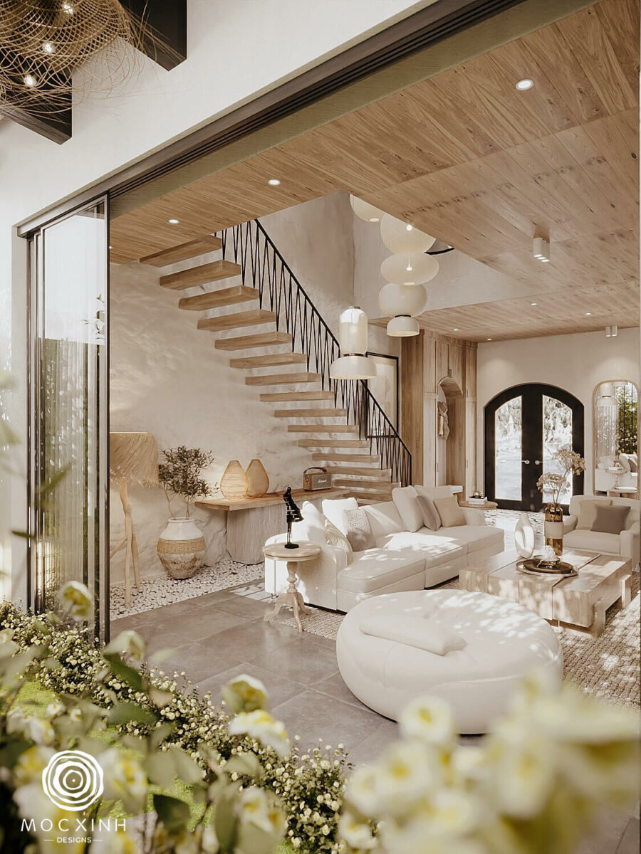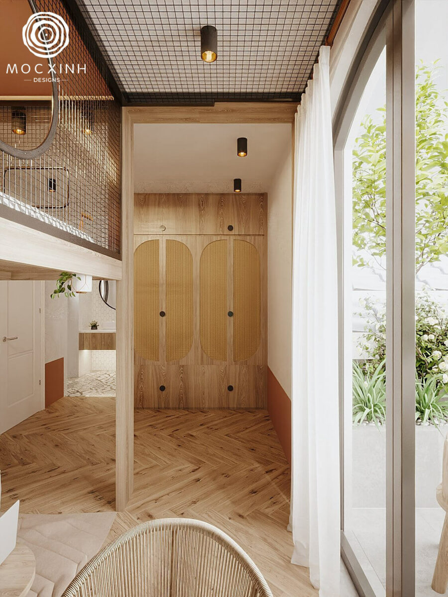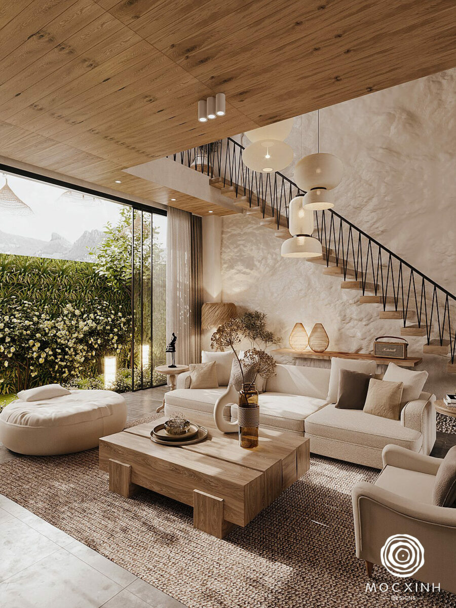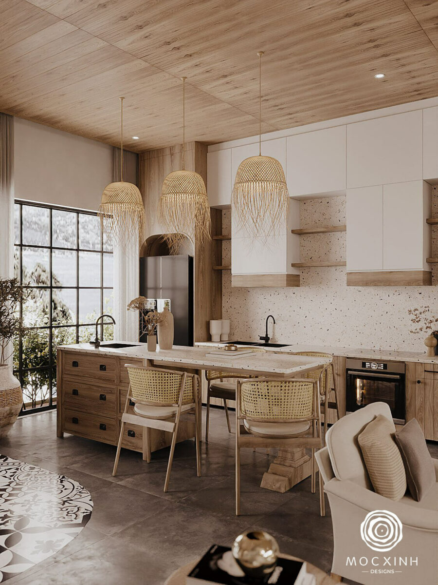 Với mong muốn sử dụng tối đa chất liệu gỗ, đội ngũ 𝐌𝐨̣̂𝐜 𝐗𝐢𝐧𝐡 𝐃𝐞𝐬𝐢𝐠𝐧𝐬 đã cùng lên ý tưởng với gia chủ để tạo nên không gian nhìn đâu thấy bình yên và nhẹ nhàng. Từ trần nhà, cầu thang đến tủ kệ bếp đều được Mộc khéo léo đưa vào những chất liệu và thiết kế hài hào, tạo ra dấu ấn riêng dành cho căn nhà.