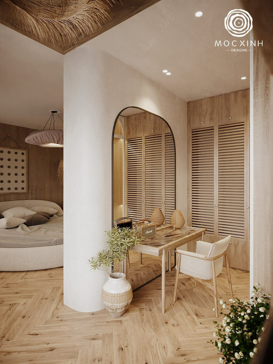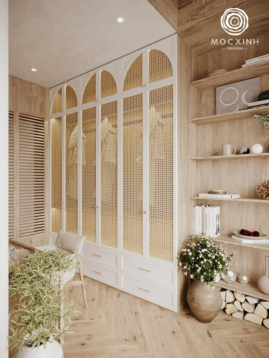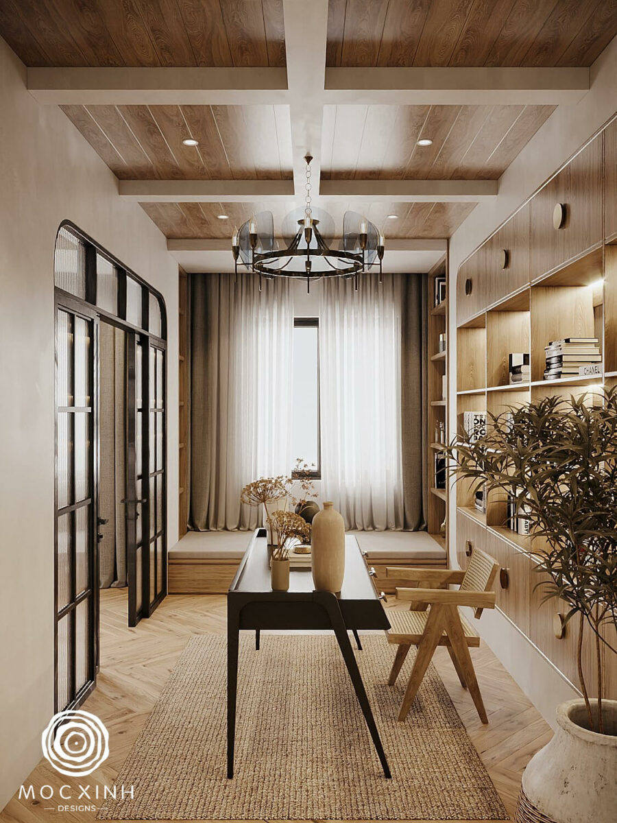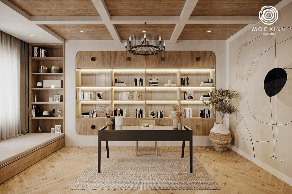 Với mong muốn sử dụng tối đa chất liệu gỗ, đội ngũ 𝐌𝐨̣̂𝐜 𝐗𝐢𝐧𝐡 𝐃𝐞𝐬𝐢𝐠𝐧𝐬 đã cùng lên ý tưởng với gia chủ để tạo nên không gian nhìn đâu thấy bình yên và nhẹ nhàng. Từ trần nhà, cầu thang đến tủ kệ bếp đều được Mộc khéo léo đưa vào những chất liệu và thiết kế hài hào, tạo ra dấu ấn riêng dành cho căn nhà.