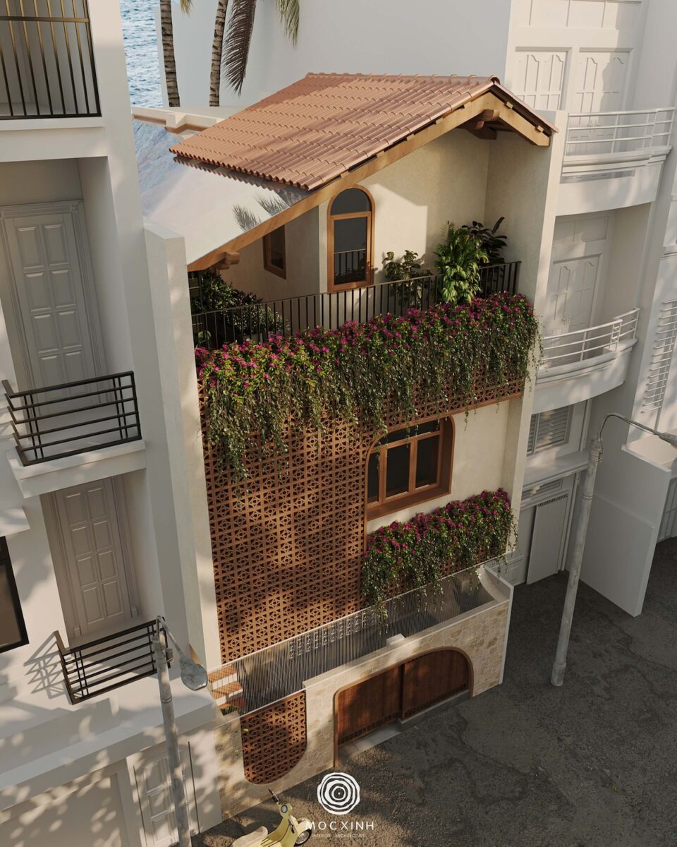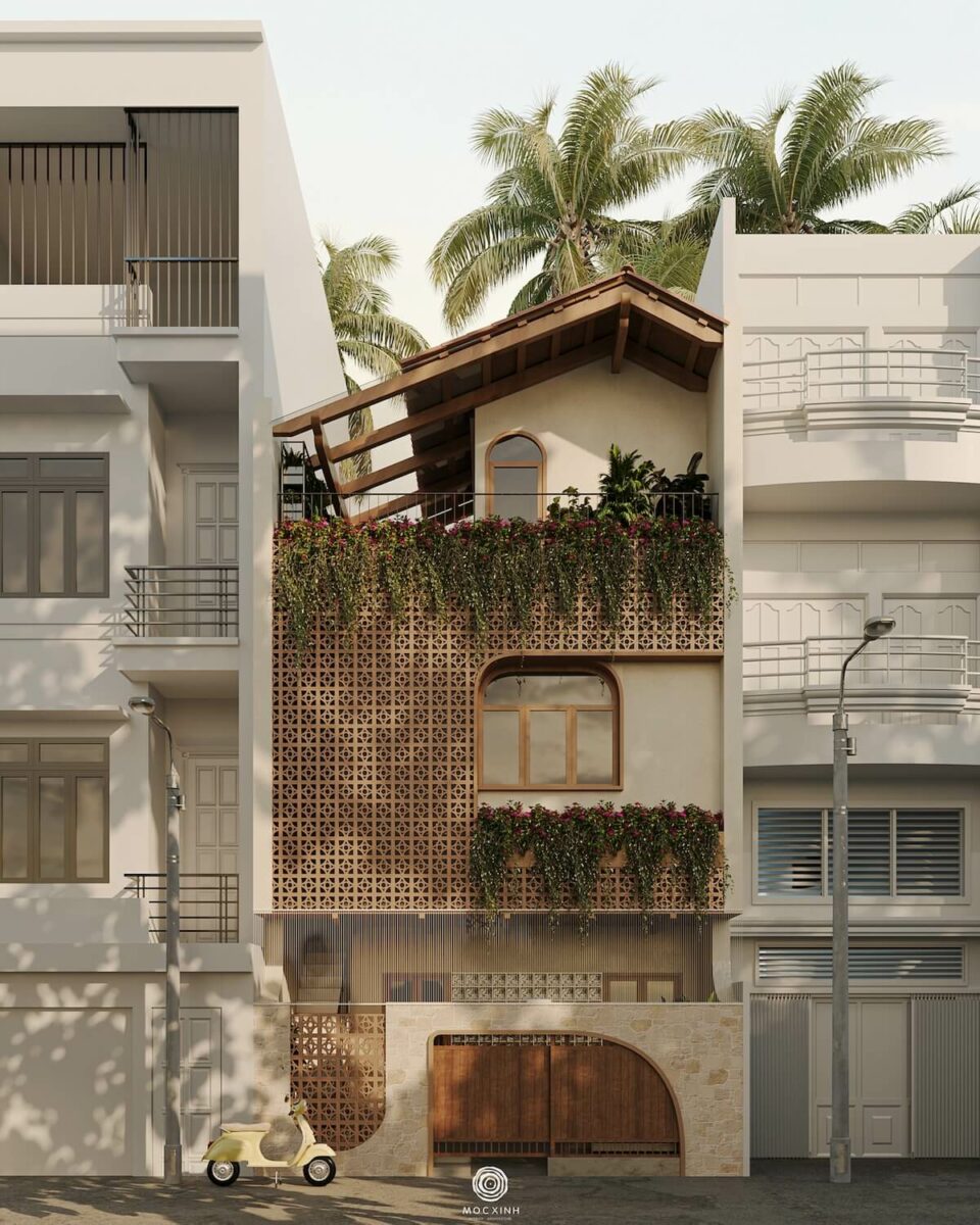 Căn nhà phố nhỏ dành ra khoảng sân để lắng lại, với hiên nhà để trú nắng, trú mưa.