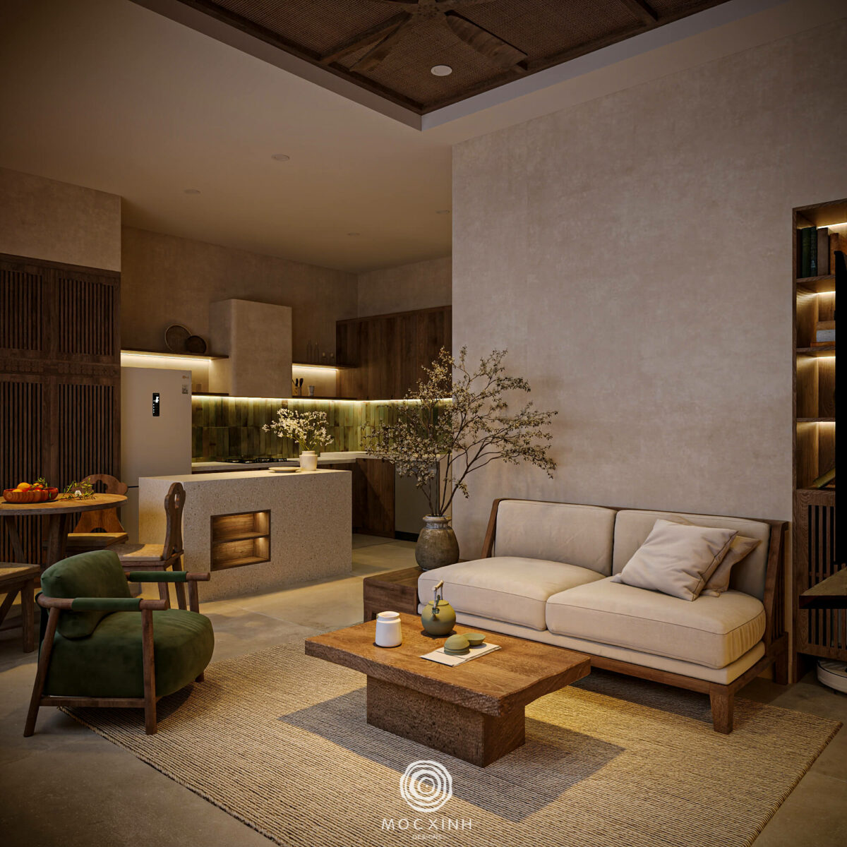 Mộc Xinh muốn gửi gắm vào không gian một nhịp sống có tính bản địa, thở cùng khí hậu miền Bắc Việt Nam – nơi ánh sáng thay đổi theo mùa và người ta cần hiên nhà để trú nắng, cần khoảng sân để lắng lại. Đó là lối sống “Chân thành với tự nhiên – Gắn bó với văn hóa sống Việt – Tinh giản và sâu sắc – Thiết kế cho cảm xúc” theo đúng triết lý Mộc Xinh hướng tới.