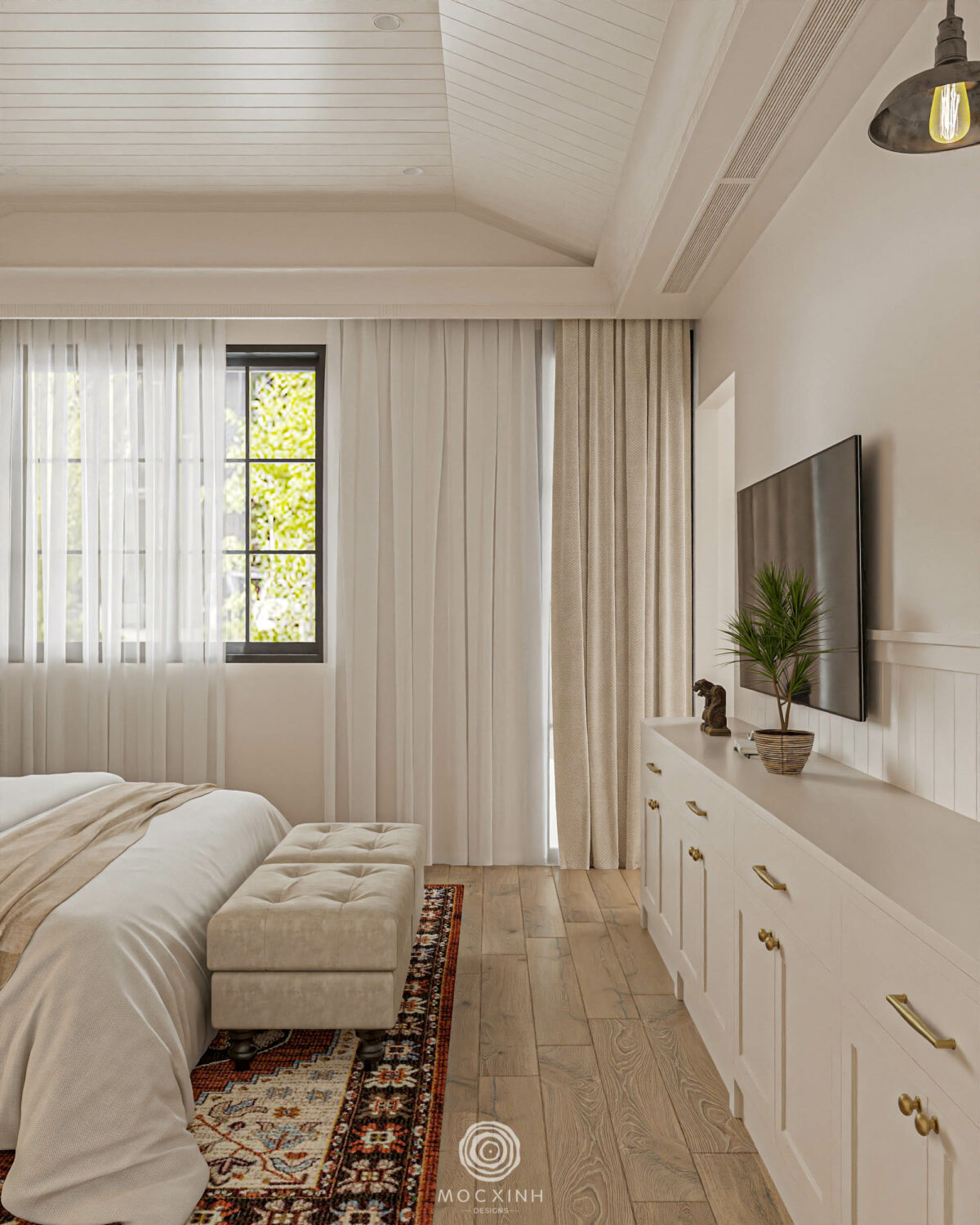 Với H10 Starlake Villa, Mộc Xinh lựa chọn kết hợp Modern Farmhouse và Transitional nhằm tạo ra “bầu không khí” như mong muốn của gia chủ với không gian sống: