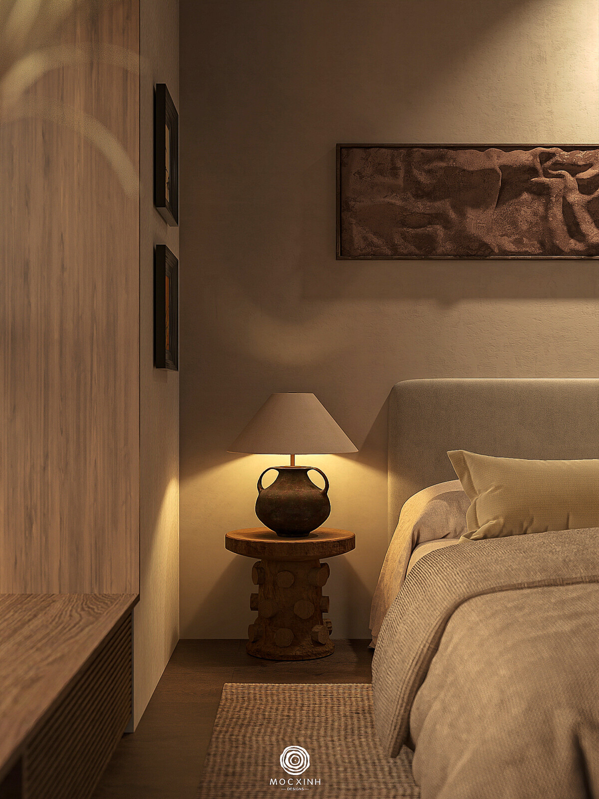 Với Mộc Xinh, ánh sáng không chỉ để nhìn, mà để cảm. Nó giúp căn hộ giữ được sự bình tĩnh giữa đô thị chồng chéo, tạo ra một phông nền không gian đủ để công nghệ, đồ dùng và nhịp sống hiện đại có thể cùng tồn tại mà không lấn át cảm xúc. The Nelson vì thế không rực rỡ, mà trầm lắng, để mỗi ngày trôi qua trong một sâu sắc và chậm rãi hơn.