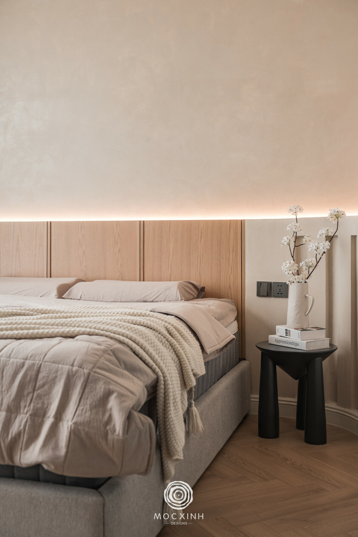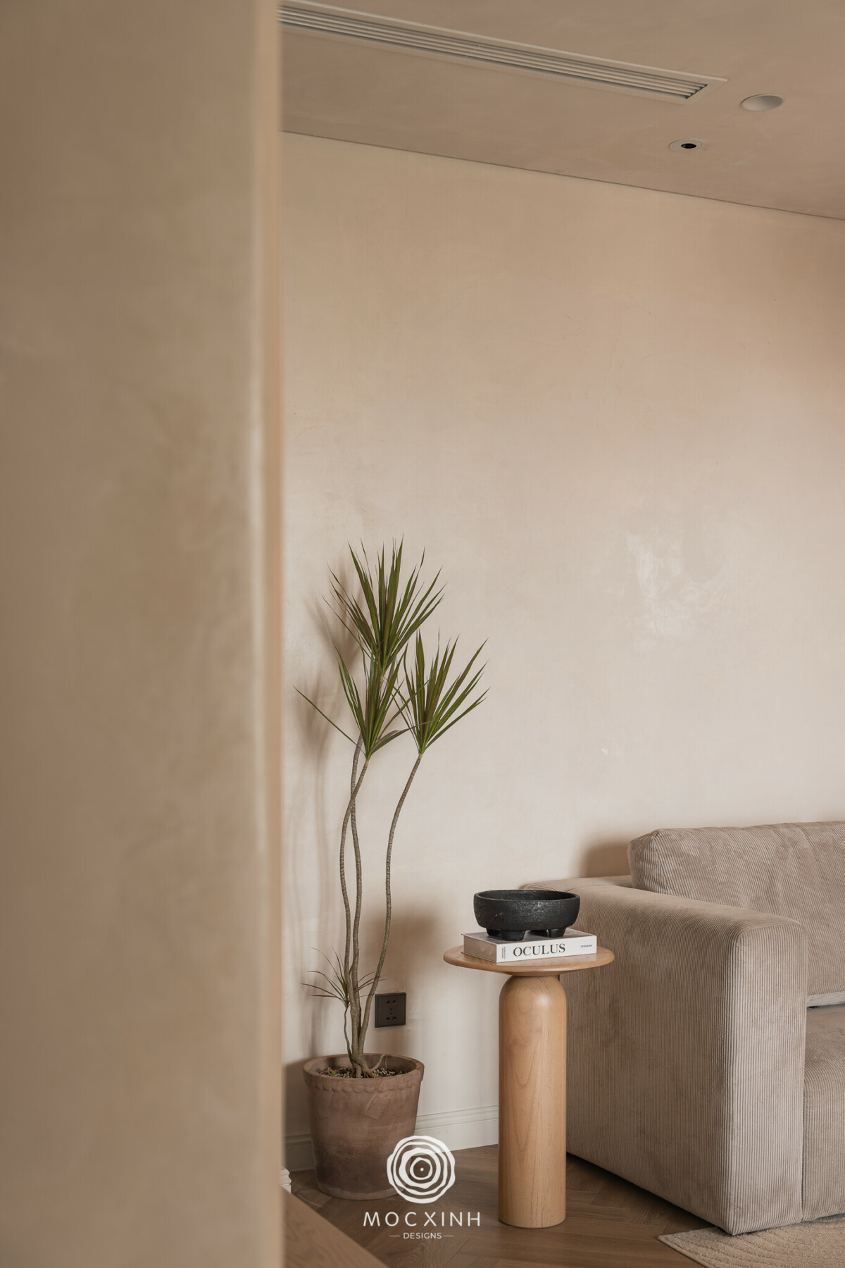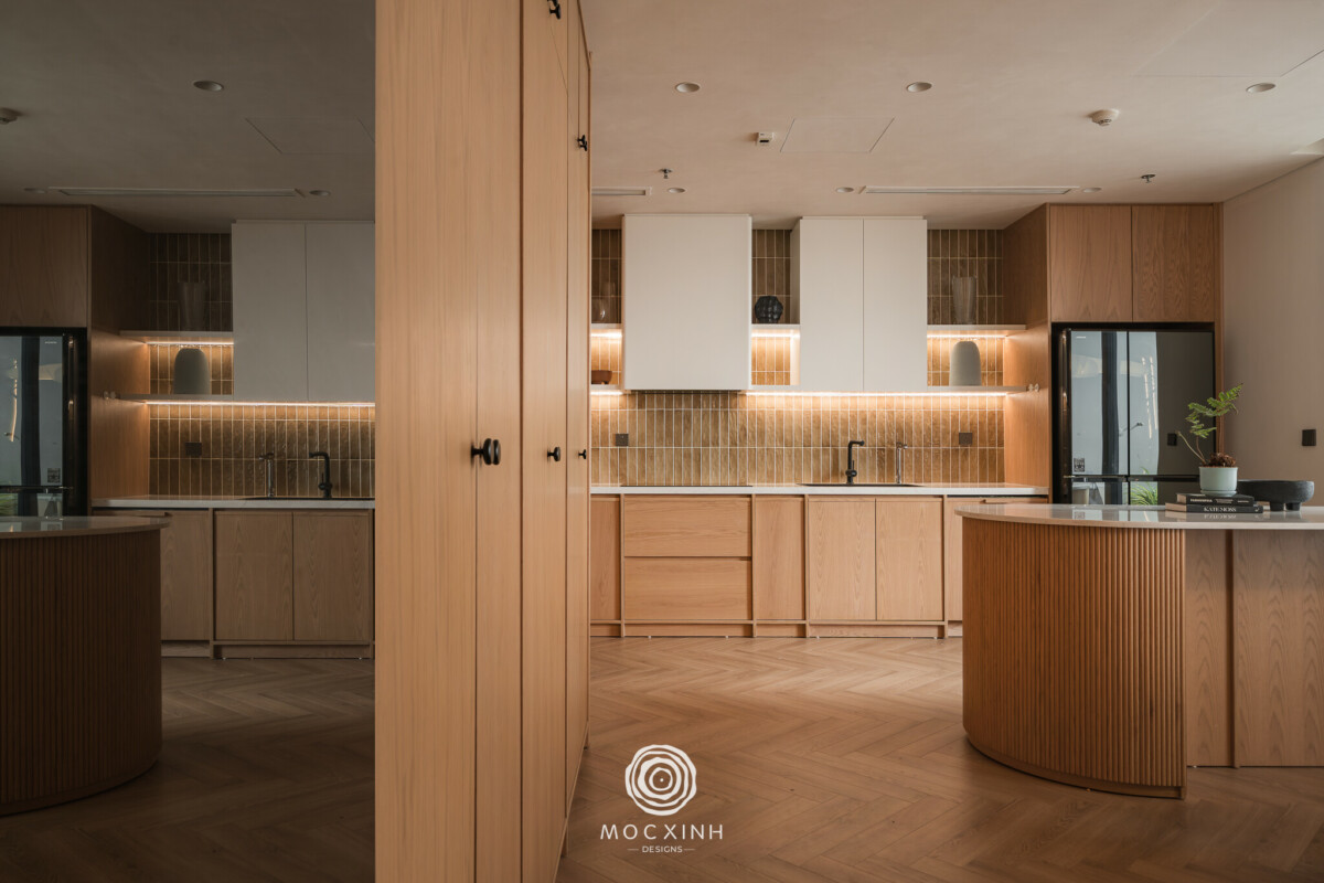 Trong bối cảnh đó, bài toán của Mộc Xinh không dừng ở thiết kế hình thức nội thất theo tinh thần Japandi, mà là quản trị thi công trong điều kiện hai đơn vị song song, khi đơn vị cũ tiếp tục đảm nhiệm phần xây dựng cơ bản, còn Mộc Xinh chịu trách nhiệm hoàn thiện nội thất và chất lượng không gian cuối cùng. Trách nhiệm “đến cùng” đồng nghĩa với việc mọi sai lệch ở phần thô đều có thể ảnh hưởng trực tiếp đến trải nghiệm sau cùng mà gia chủ mong đợi.