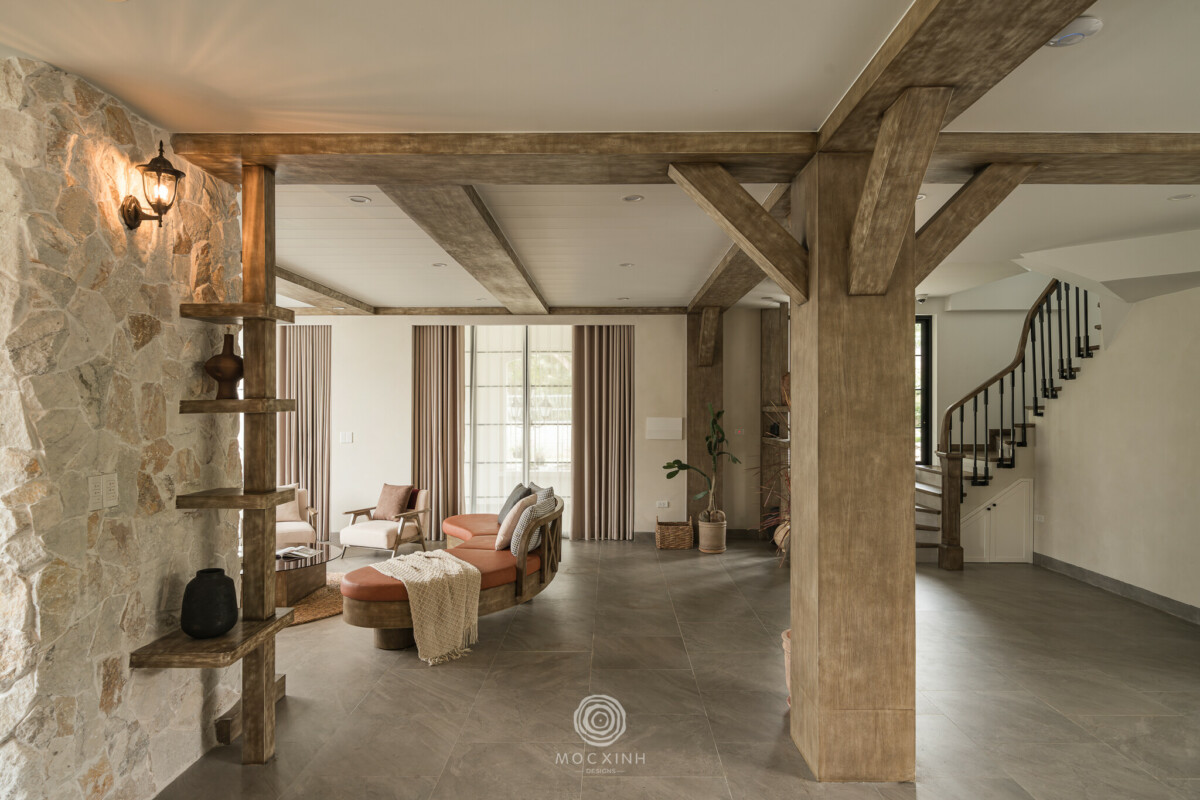 Phong cách Modern Farmhouse khi được thực hiện nghiêm túc không chỉ là tập hợp các yếu tố “gỗ thô + trắng sáng + trần gỗ + hiên rộng” mà là cách chuyển hóa tinh thần này thành một không gian sống đương đại, bền vững và có chiều sâu cảm xúc. Trong nhiều dự án của Mộc Xinh Designs, chúng tôi xem Farmhouse như một khung lý thuyết thiết kế, nơi vật liệu, ánh sáng, tỷ lệ và đời sống giao nhau.