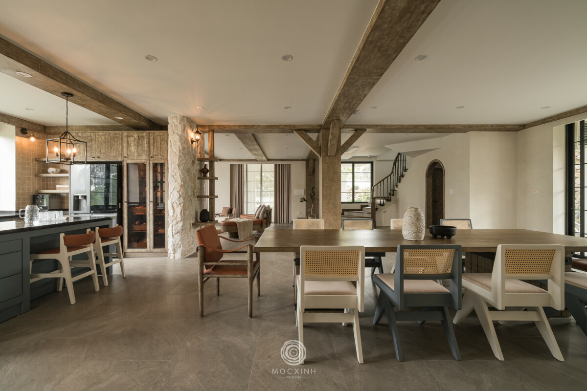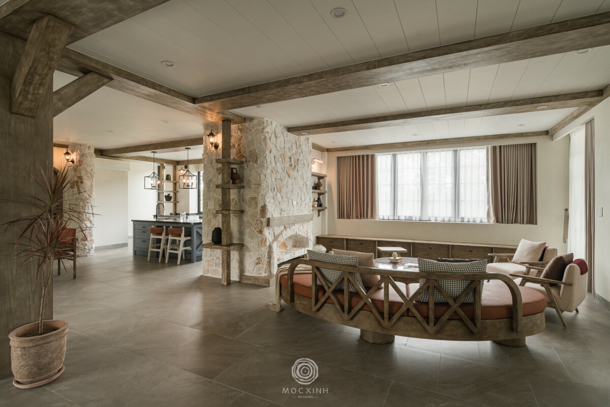 Đối với Mộc Xinh, việc “làm mềm” các quy tắc thiết kế trong các phong cách du nhập để hài hòa với cảnh quan Việt Nam luôn là công việc đòi hỏi sự nhạy cảm nhất định từ nhà thiết kế. Với Modern Farmhouse hay Modern Rustic, sự sang trọng sẽ không nằm ở hình thức nhập khẩu và sự mộc mạc không đem lại cảm giác xa cách như đến từ một vùng xa xôi.