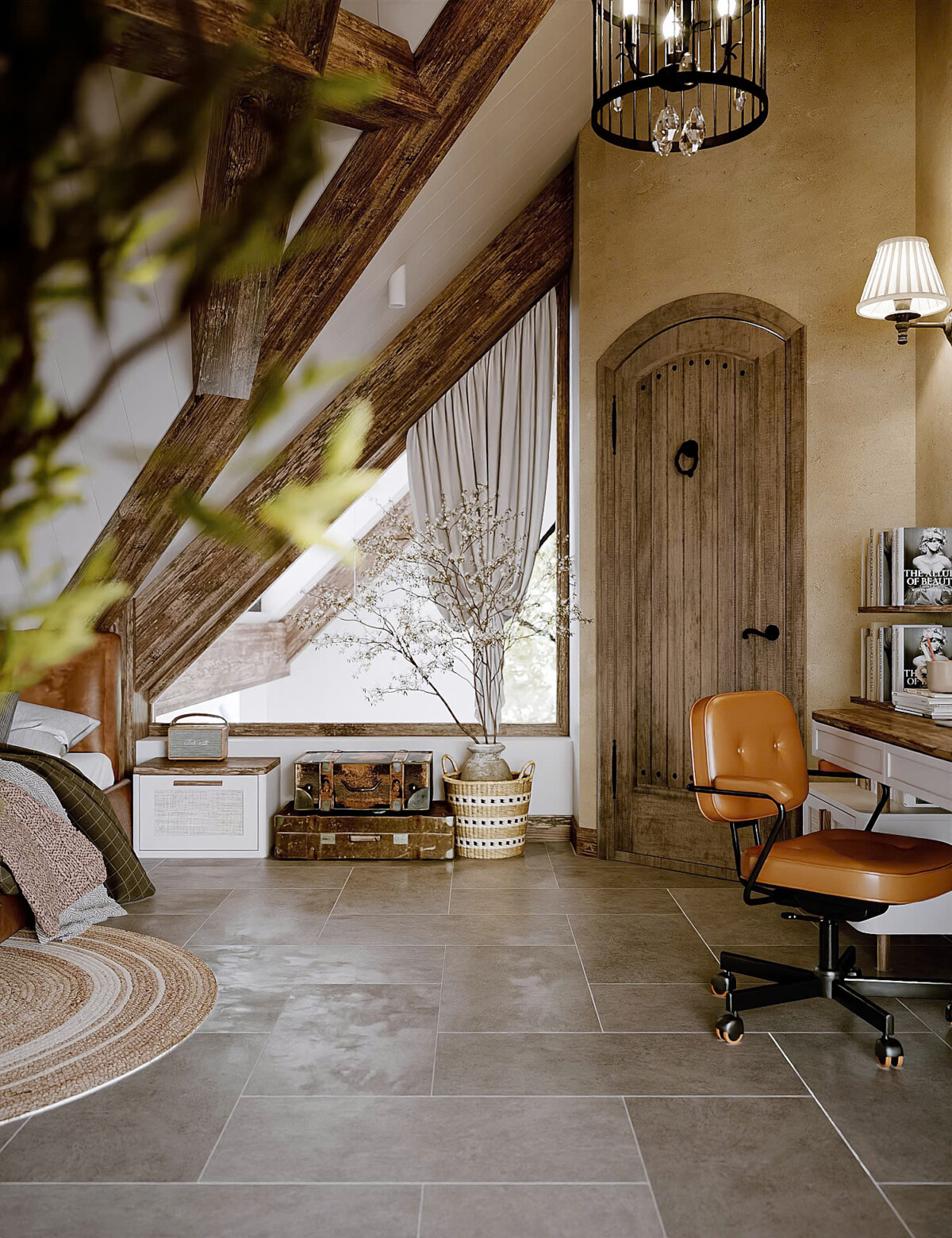 - Cửa sổ lớn mở theo hướng gió tự nhiên, kết hợp cửa chớp để kiểm soát ánh sáng.