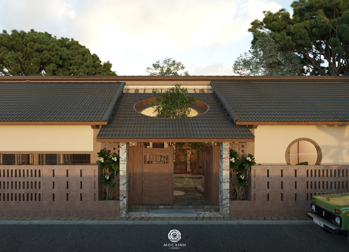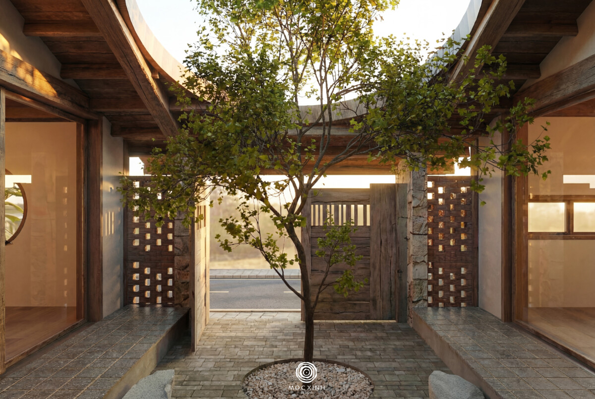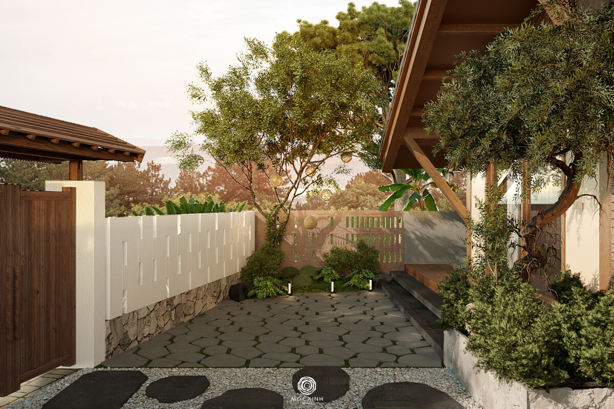 Sân trong và hiên nhà là những không gian làm giàu thêm trải nghiệm theo chiều ngang. Chúng tạo ra những điểm dừng, nơi con người có thể ngồi lại, quan sát, cảm nhận sự thay đổi của thời tiết và thiên nhiên xung quanh. Khi không gian trong và ngoài đan xen, ngôi nhà một tầng không còn là một mặt bằng đóng kín, mà trở thành một chuỗi trải nghiệm liên tục.