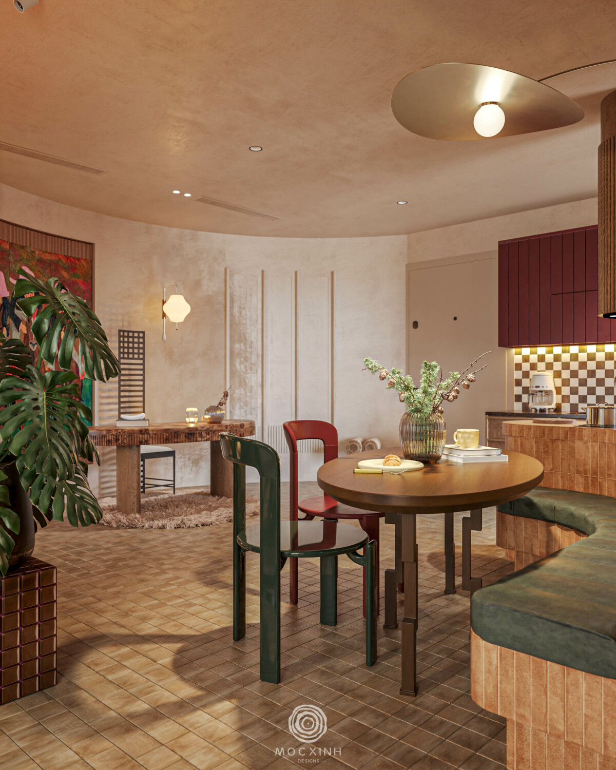 Phong cách ấn tượng tại Mộc Xinh thể hiện năng lực tổ chức nhiều lớp thẩm mỹ trong cùng một không gian. Mỗi yếu tố đều nằm trong một hệ quy chiếu rõ ràng. Không gian giữ được cá tính mạnh, đồng thời duy trì sự ổn định trong trải nghiệm sử dụng lâu dài.