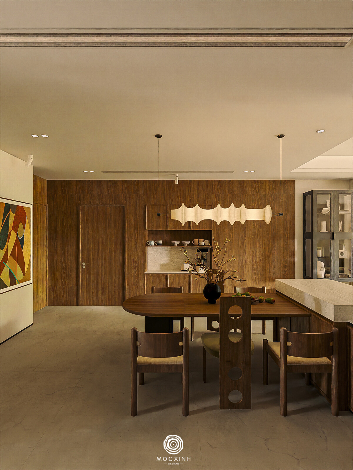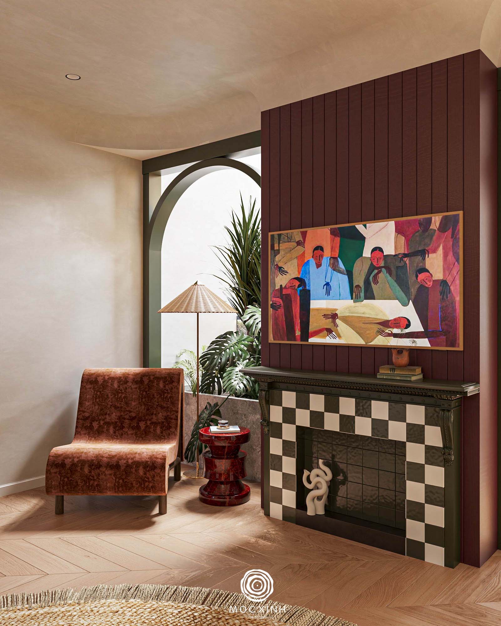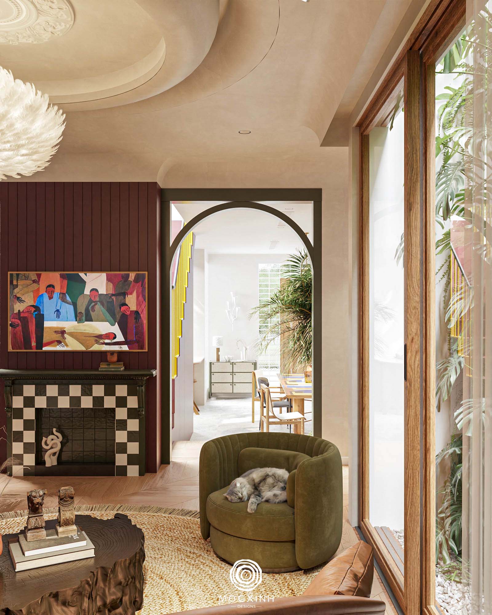 Mỗi dự án theo phong cách này của Mộc Xinh đều được phân vai và tổ chức các yếu tố này theo lớp lang cụ thể. Xác định rõ ràng chính – phụ – khoảng trống để các chi tiết hỗ trợ và hài hòa thay vì cạnh tranh. Tạo không gian đáng sống cho gia chủ.