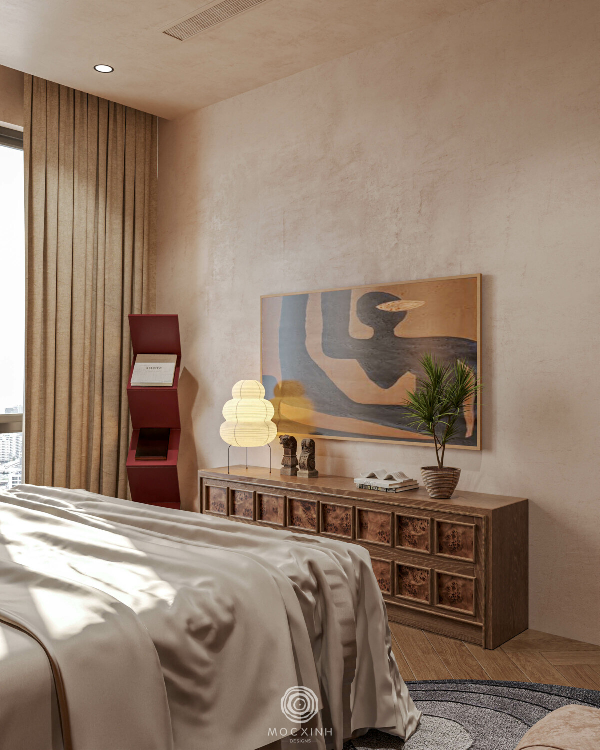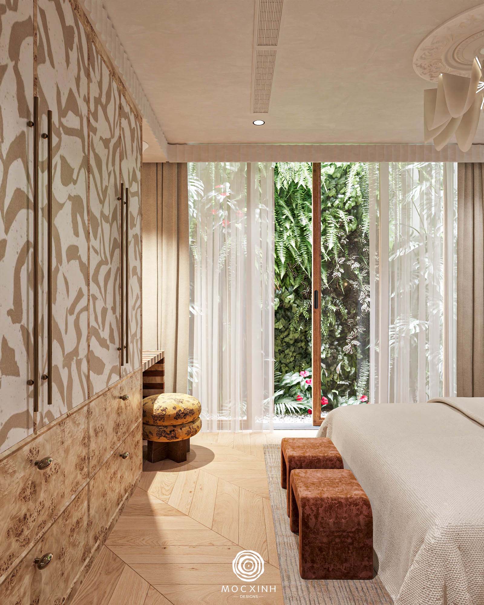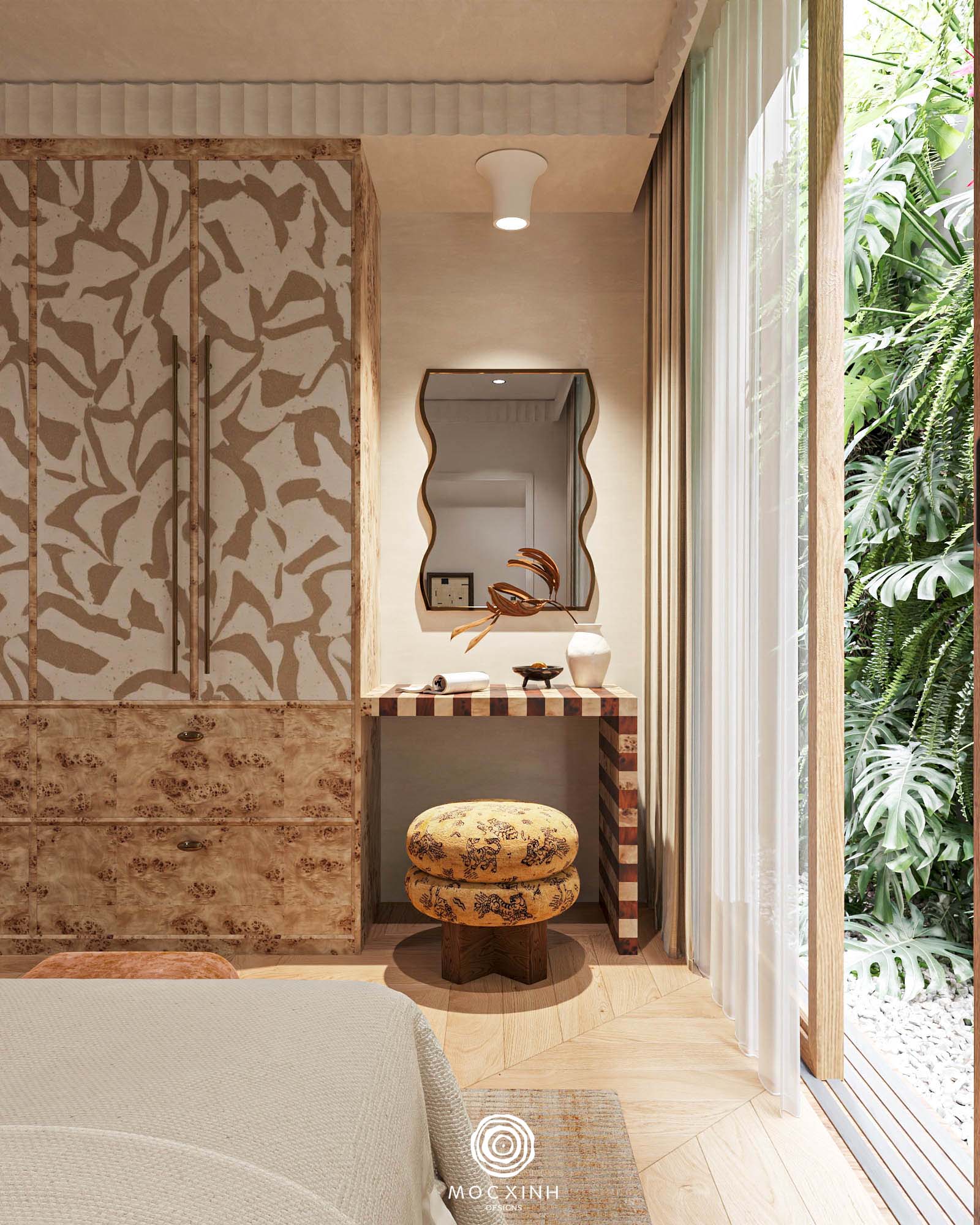 Mỗi dự án theo phong cách này của Mộc Xinh đều được phân vai và tổ chức các yếu tố này theo lớp lang cụ thể. Xác định rõ ràng chính – phụ – khoảng trống để các chi tiết hỗ trợ và hài hòa thay vì cạnh tranh. Tạo không gian đáng sống cho gia chủ.