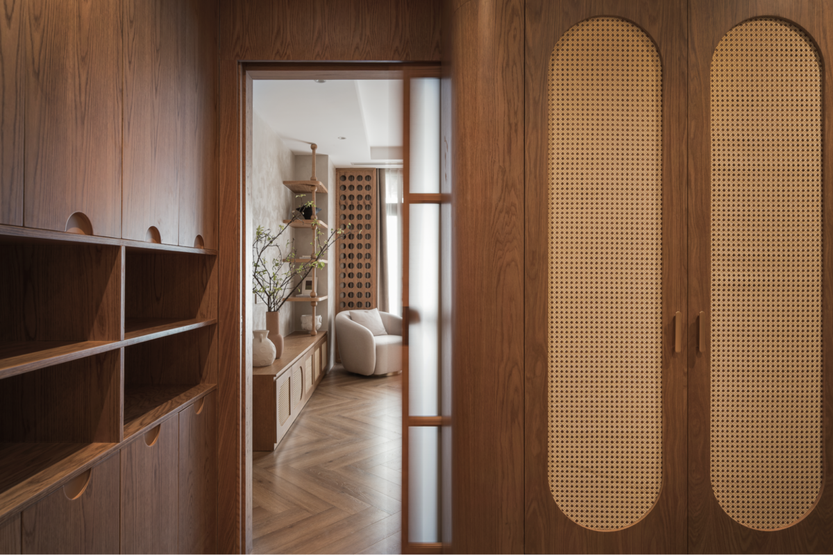 Trong phong cách Japandi, tương phản không được thể hiện qua sự đối chọi mạnh mẽ mà hiện hữu một cách nhịp nhàng và có kiểm soát. Thay vì dùng cặp màu đối lập gay gắt hay hình khối nổi bật, Japandi tạo tương phản bằng những chuyển tiếp mềm giữa sáng và tối, giữa thô mộc và tinh giản, trở thành phương tiện dẫn nhịp cho không gian.