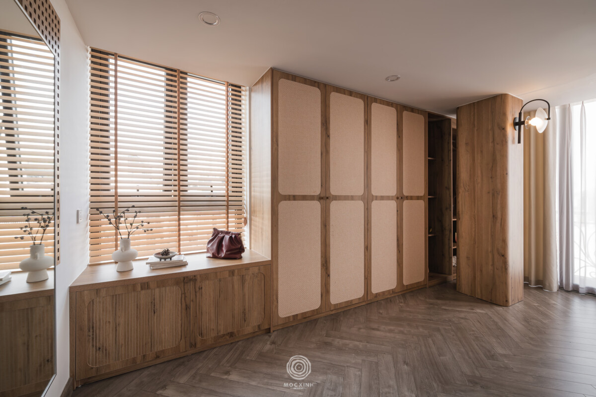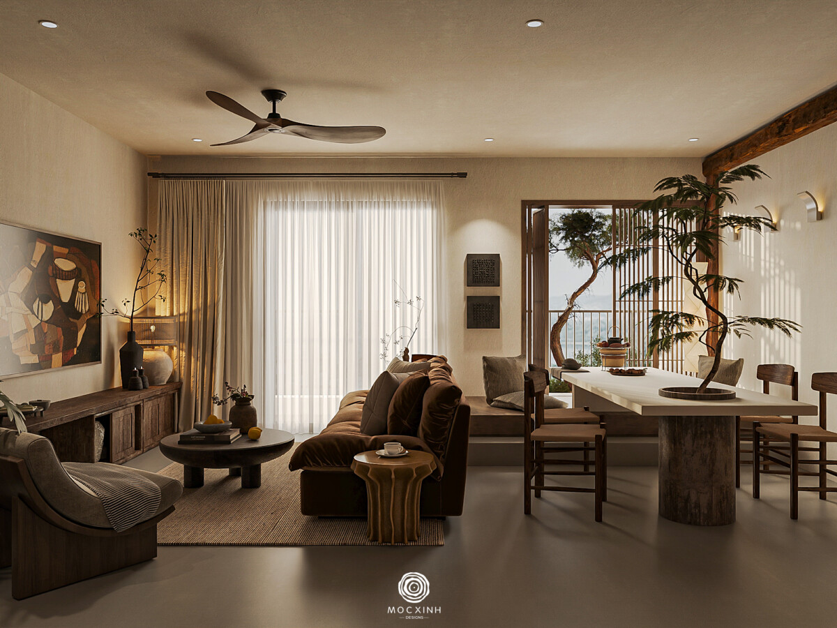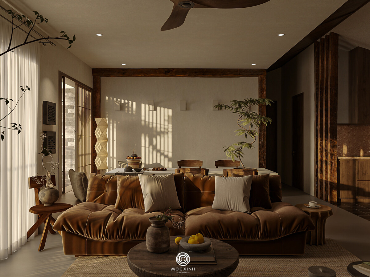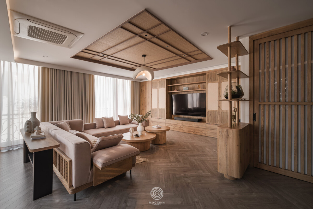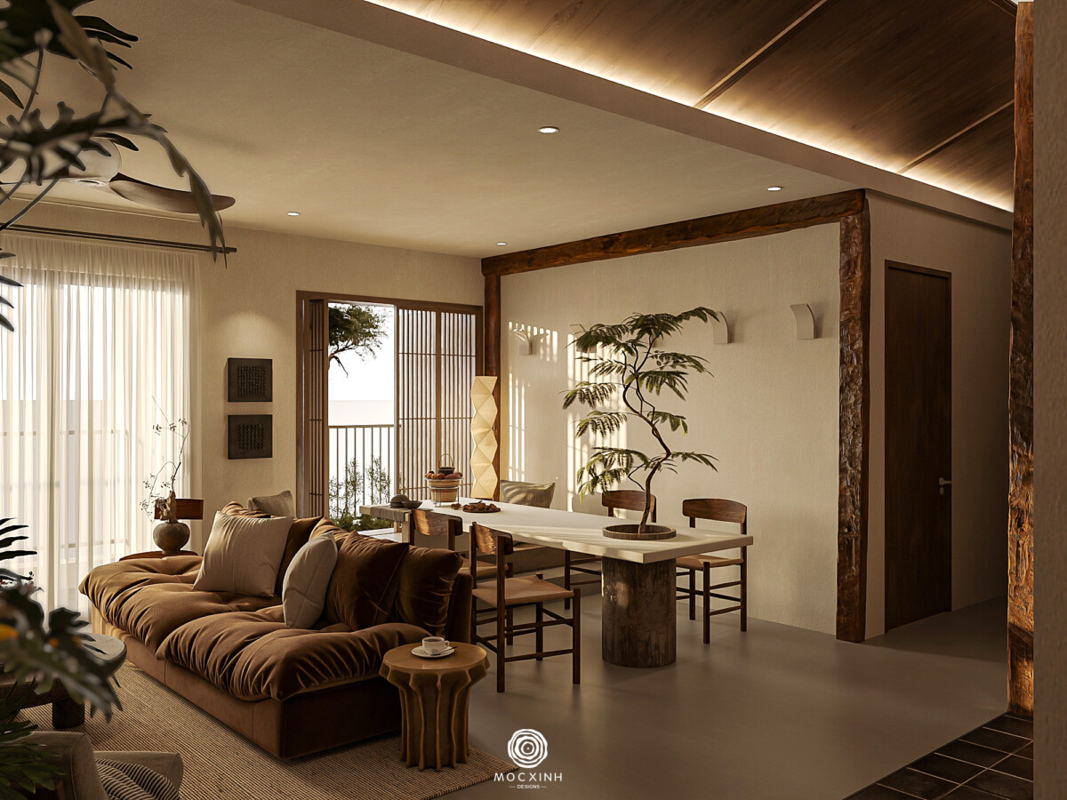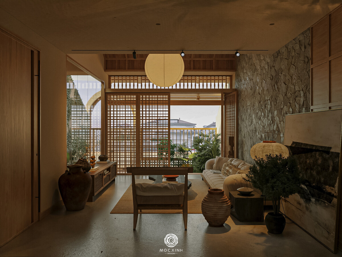 Mộc Xinh gọi chung nhóm này là phong cách Nhật. Không gian sẽ không được tạo ra để gây ấn tượng thị giác, mà để giữ nhịp sống chậm và ổn định. Trong thiết kế, trọng tâm không nằm ở hình thức, mà nằm ở cách các yếu tố cơ bản được tổ chức: ánh sáng đi vào không gian, vật liệu phản ứng với thời gian, các khoảng trống cần thiết và tỷ lệ để giữ con người ở trạng thái cân bằng.
