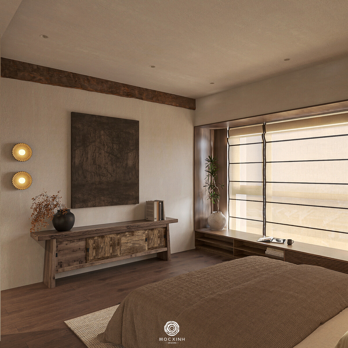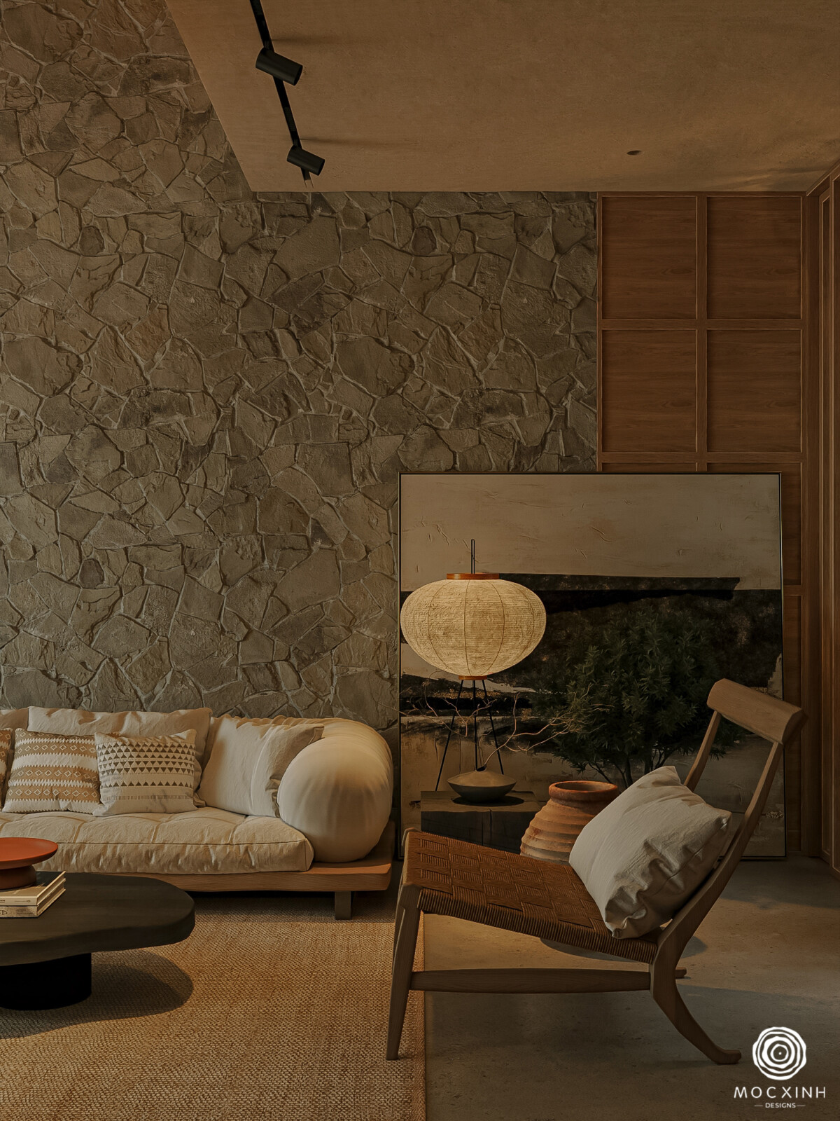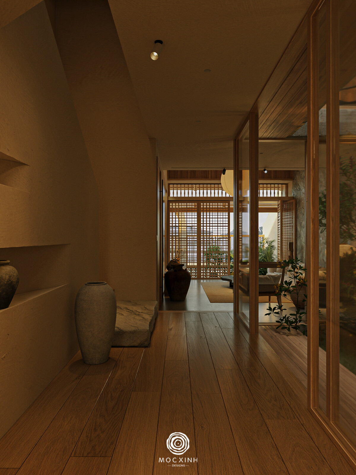 Phong cách Nhật tại Mộc Xinh được phát triển như một nhóm thiết kế hướng đến sự tĩnh tại và trạng thái cân bằng trong không gian sống. Không gian được giản lược có chủ đích, kiểm soát chặt về ánh sáng, vật liệu và tỷ lệ để giảm nhiễu thị giác và đưa con người về trạng thái ổn định hơn trong sinh hoạt hàng ngày.