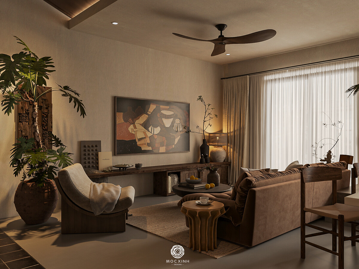 Với các dự án thuộc phong cách này, Mộc Xinh theo đuổi không chỉ yếu tố thẩm mỹ mà còn là thái độ sống, trân trọng những điều đơn giản, bất toàn, coi không gian là nơi giúp con người trở về trạng thái cân bằng.