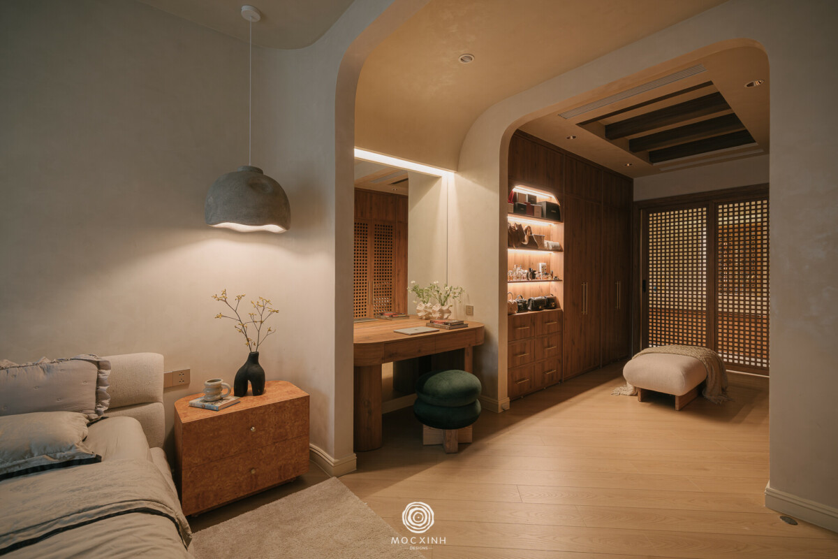 Như thế, tinh thần Wabi-Sabi và tối giản không phải là sự lựa chọn mang tính định danh ngay từ đầu, mà là kết quả của quá trình chắt lọc: từ vật liệu thô mộc, bề mặt không hoàn hảo tuyệt đối, đến cách tiết chế đồ nội thất và xử lý ánh sáng. Phong cách, lúc này, chỉ đóng vai trò như một cách gọi tên cho tổng hòa những lựa chọn đã được đưa ra vì phù hợp với đời sống của gia chủ, chứ không phải vì chạy theo một hình ảnh sẵn có.