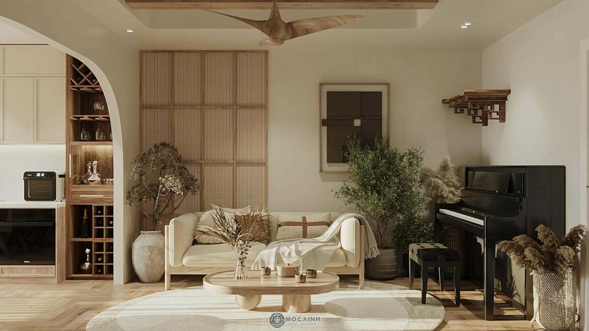 Căn nhà với diện tích rộng được chia miếng mảng giúp không gian được liên kết liền mạch, việc sử dụng các vòm từ thạch cao dạng mở đem lại hiểu quả cao trong việc mở rộng không gian theo ý thích.