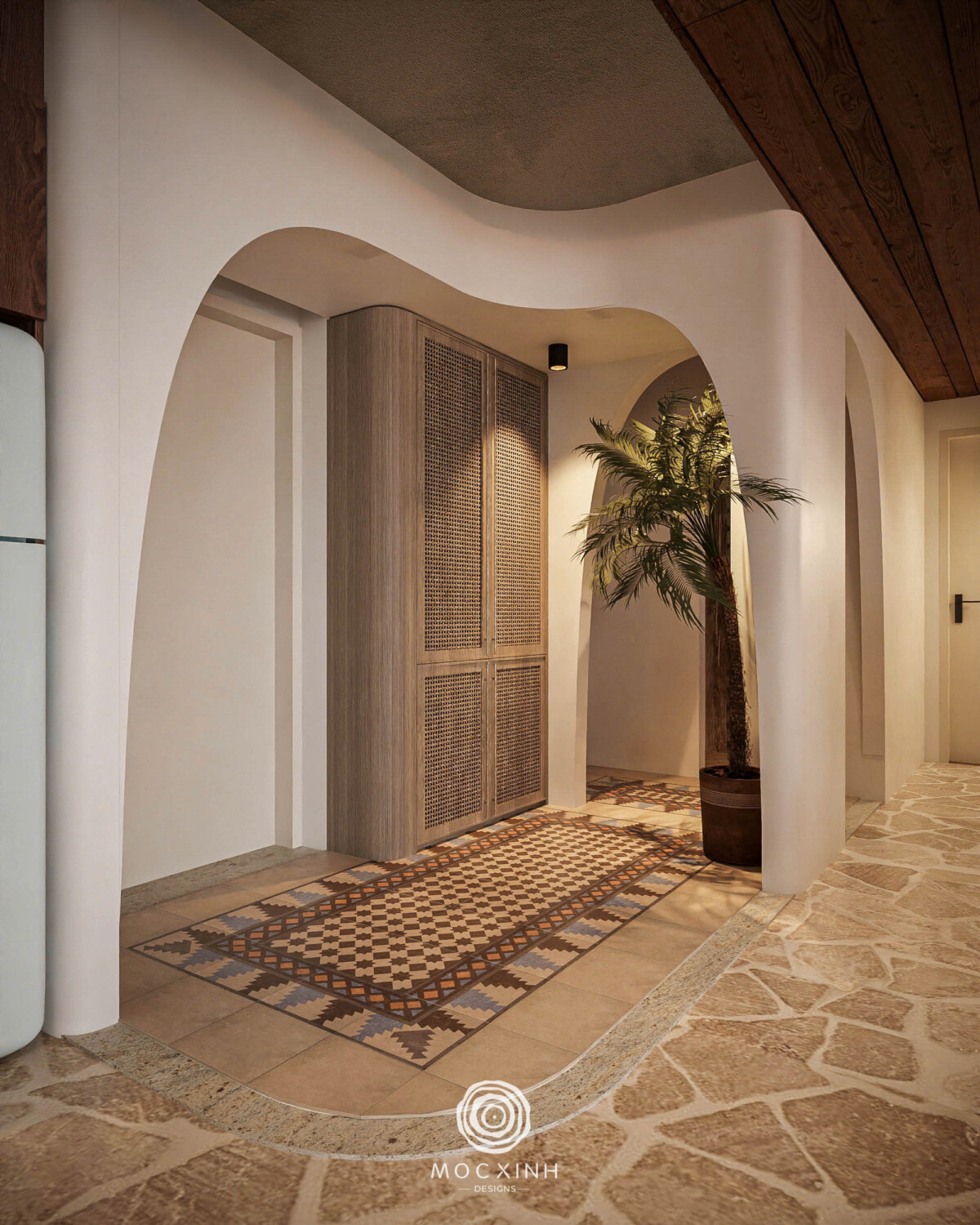 Với khu vực sảnh cũ thiếu điểm nhấn và chưa tương xứng với giá trị căn hộ, Mộc Xinh cải tạo lại không gian sảnh ấn tượng hơn đồng thời kết nối không gian này với khu vực vệ sinh chung. Đây sẽ là khoảng đệm trước khi người sử dụng rời đi hoặc sau khi họ trở về căn hộ của mình.
