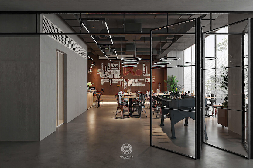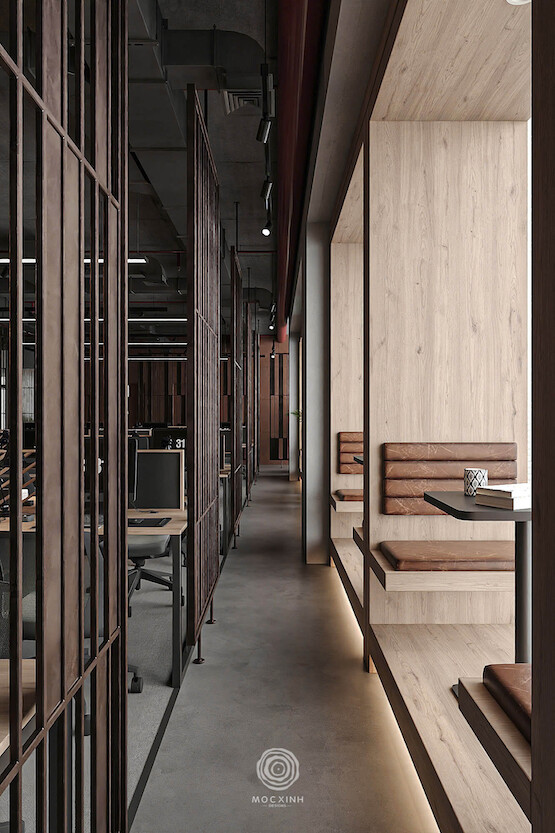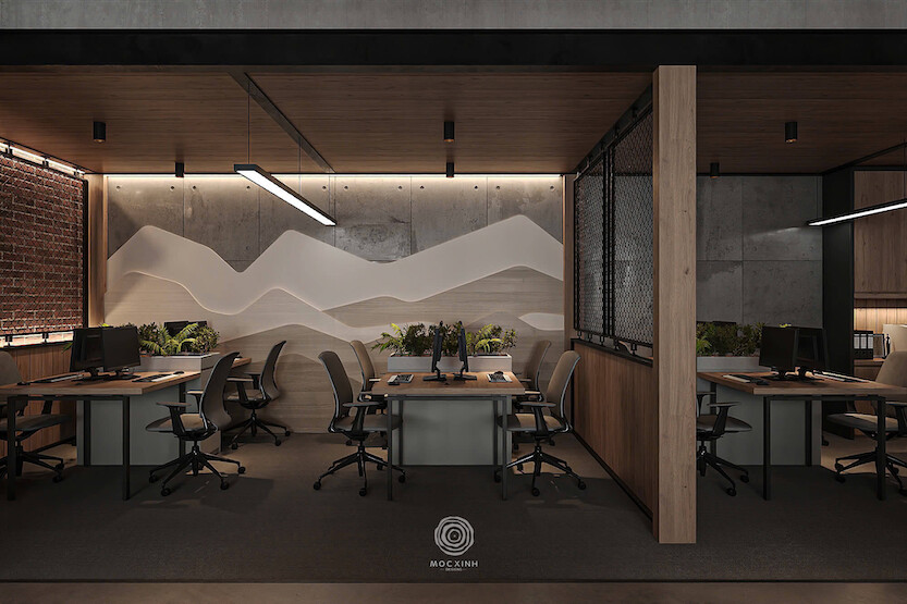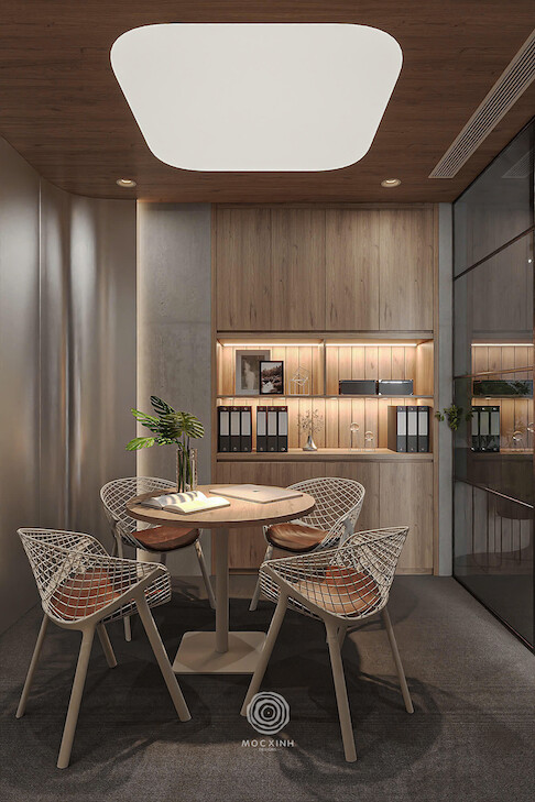 Nhằm tối ưu hoá năng suất ngay trong không gian làm việc, đội ngũ Mộc Xinh đã tiến hành sắp xếp và phân khu chức năng từng khu vực văn phòng theo hướng từ công cộng, bán công cộng đến riêng tư.