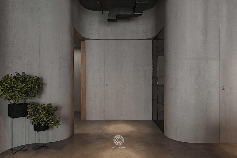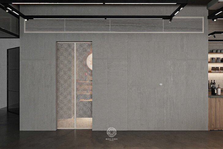 Điểm đặc trưng của phong cách Modern Industrial nằm ở cách tôn vinh vẻ đẹp nguyên bản của vật liệu. Thiết kế lựa chọn giữ lại sự thô mộc tự nhiên để tạo nên cá tính riêng cho không gian. Những mảng tường hoàn thiện từ gỗ và đá trở thành điểm nhấn nổi bật, góp phần làm rõ tinh thần mạnh mẽ nhưng đầy chiều sâu của toàn bộ dự án.