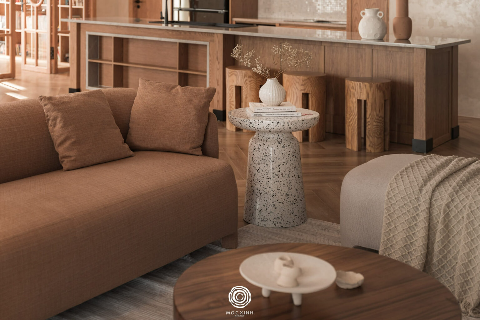 Nếu bạn cũng đang đi tìm kiếm cho không gian sống phong cách Wabi Sabi & Japandi thô mộc với vẻ đẹp tinh tế, mộc mạc và bền vững như dự án thi công căn hộ Royal City 150m2, đừng ngần ngại liên hệ với Mộc Xinh nhé!