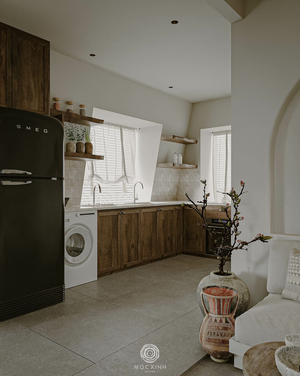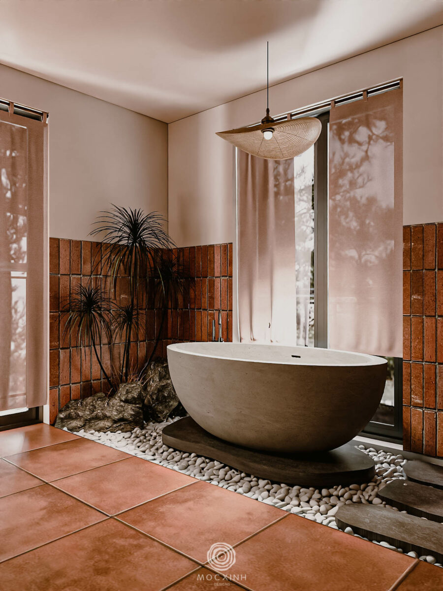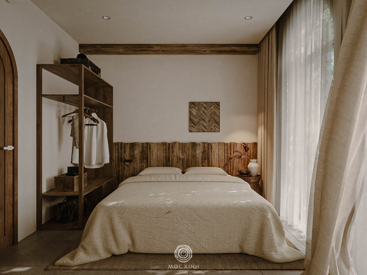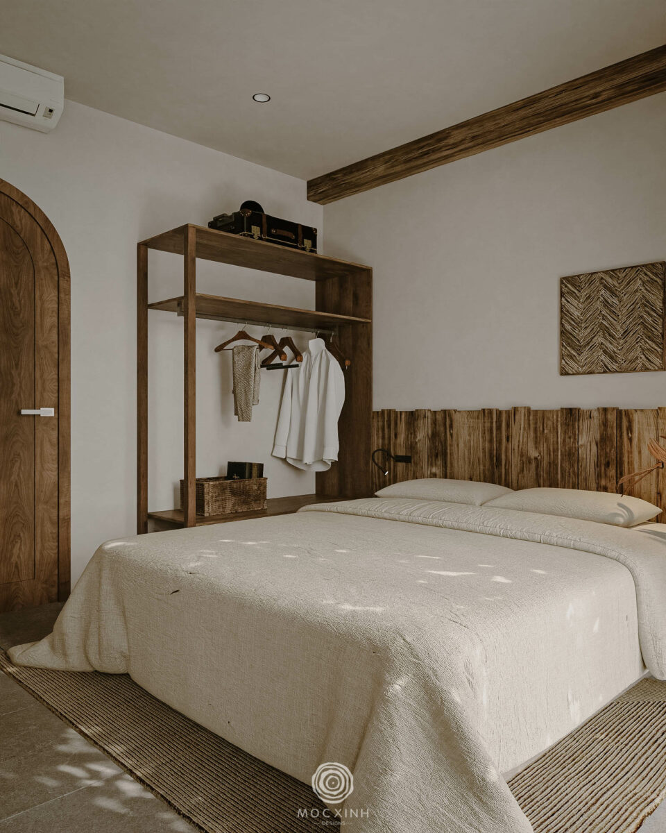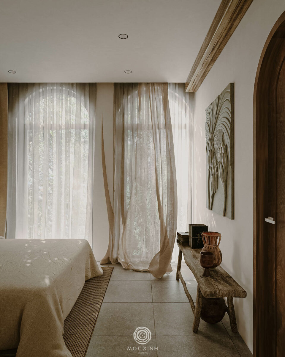 Bước vào không gian mộc mạc của căn homestay ven vịnh là chạm tới nét dịu êm tĩnh tại. Bạn chợt hiểu cảm giác thư thái sâu sắc không chỉ đến từ sắc gỗ thô mộc hay bồn tắm tròn khiêm nhường trên lớp sỏi đá. Riêng tư mà tinh tế, chính sự kết nối thấm nhuần nét giản dị tự nhiên đã mang đến xúc cảm thật yên.