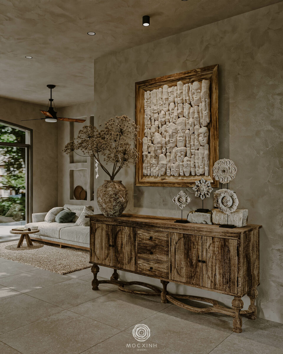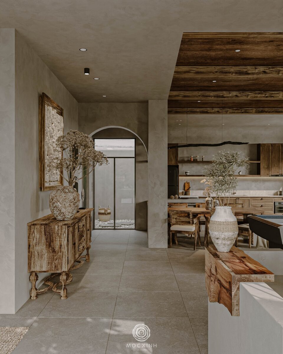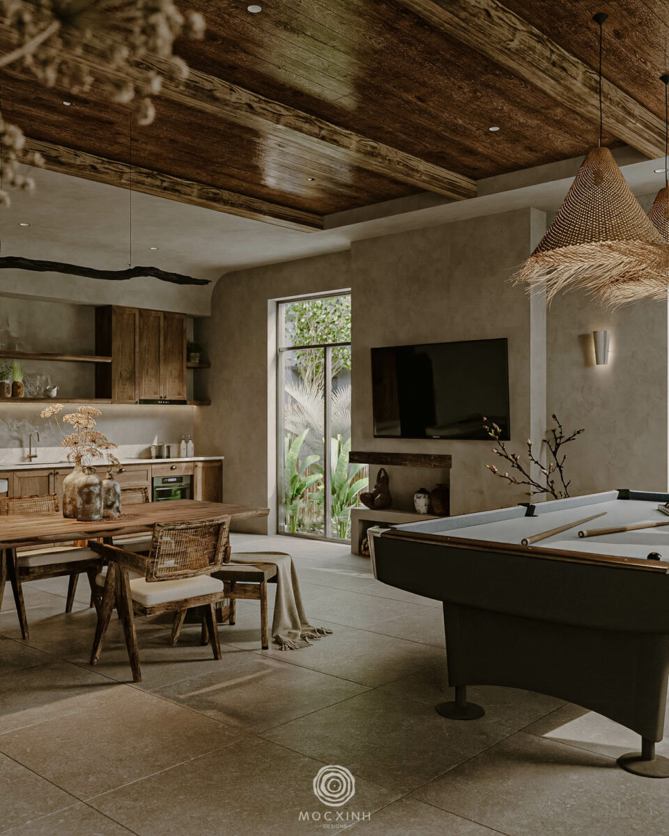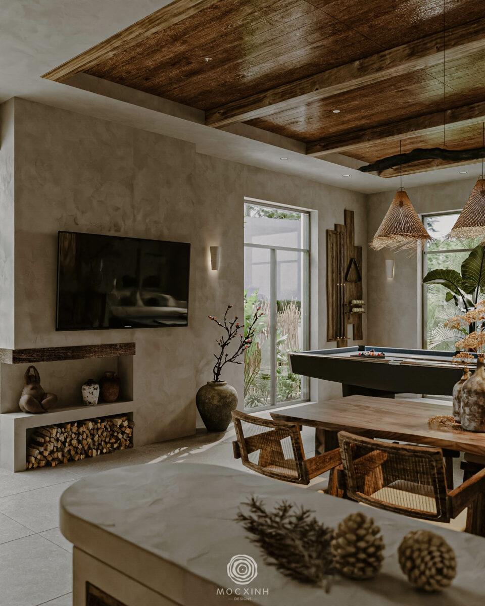 Bước vào không gian mộc mạc của căn homestay ven vịnh là chạm tới nét dịu êm tĩnh tại. Bạn chợt hiểu cảm giác thư thái sâu sắc không chỉ đến từ sắc gỗ thô mộc hay bồn tắm tròn khiêm nhường trên lớp sỏi đá. Riêng tư mà tinh tế, chính sự kết nối thấm nhuần nét giản dị tự nhiên đã mang đến xúc cảm thật yên.